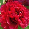 「島津紅」は赤色で千重咲きの華やかな牡丹。丸弁の抱え咲きの中輪花となります。