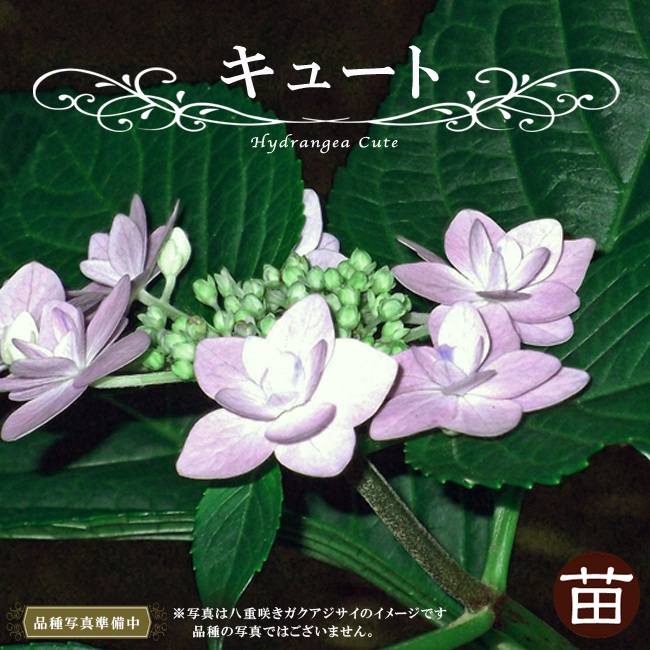 白く縁取りされた薄いピンク色花びらが可愛らしい、八重咲きのガクアジサイです。