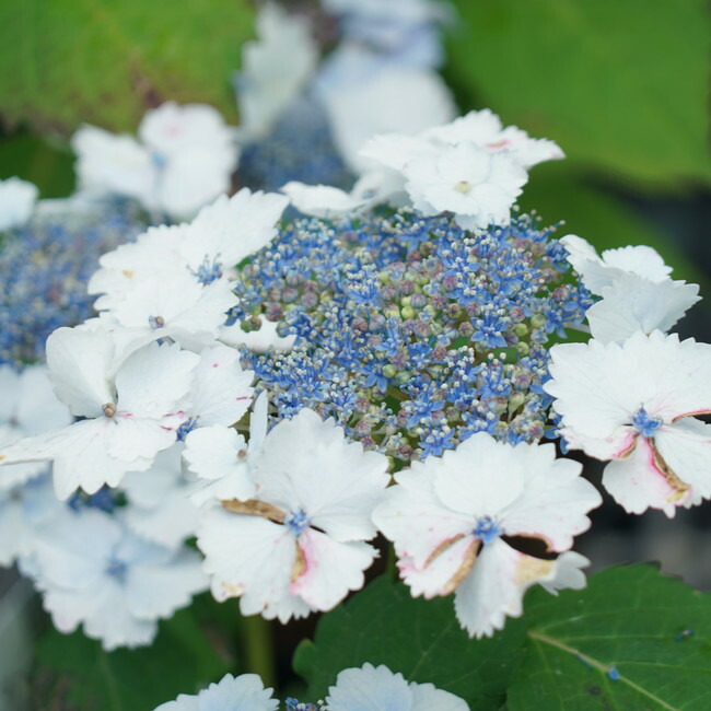 肥沃な土壌を好み、酸性土だと花色が青、アルカリ性だと赤に変わります。ヤマアジサイは土質による色の変色は少ないです。庭植えにする場合は、土の酸度調整をしないままに放っておくと、青色に傾きやすくなります。