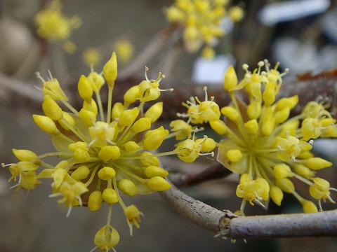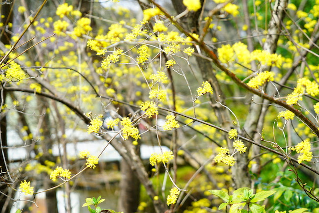 春が来たことを教えてくれる黄色い花。サンシュユです。