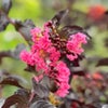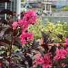 「シェルピンク(Shell Pink)」は、黒い葉に対して際立つ美しい明るいコーラルピンクの花が、宝石のようにスタイリッシュなサルスベリです。