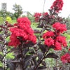 サルスベリ「カラス葉赤花」は、カラスのようなしっとりとした黒い葉を持つ銅葉のサルスベリです。黒い葉に赤い花が咲く美しい品種。夏の暑い時期を情熱的に彩ります。