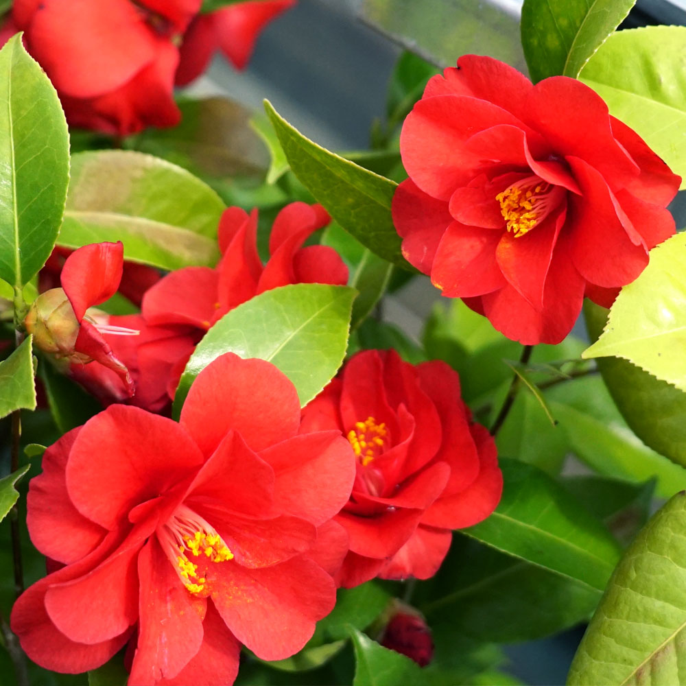 レッドホッツは、カルフォルニアで作出された西洋ツバキで、明るい赤色の八重咲き品種です。