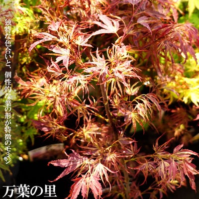 万葉の里(まんようのさと)はヤマモミジ系で、「照葉」の枝変わりで生まれ、撚れ曲がった葉とレトロ調の色は今までになかった高級感のある品種です。巧妙にデザインされたような、独特の葉形をしています。