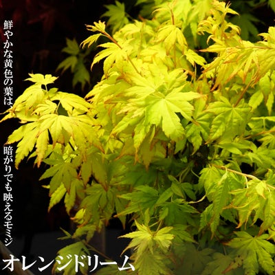 オレンジ・ドリームはイタリアで作出されたもみじです。芽吹き時期の明るい黄色葉で葉先の橙色が印象的なモミジ。早めに退色して夏は葉全体がさわやかな緑色に。秋には濃い赤色に美しく紅葉します。