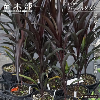 「パープルダズラー」は鮮やかな黒葉が印象的なドラセナです。管理が簡単で、暖地では花壇や寄せ植えのワンポイントとして楽しめます。根元からたくさん葉が出るので密度の高い株となります。