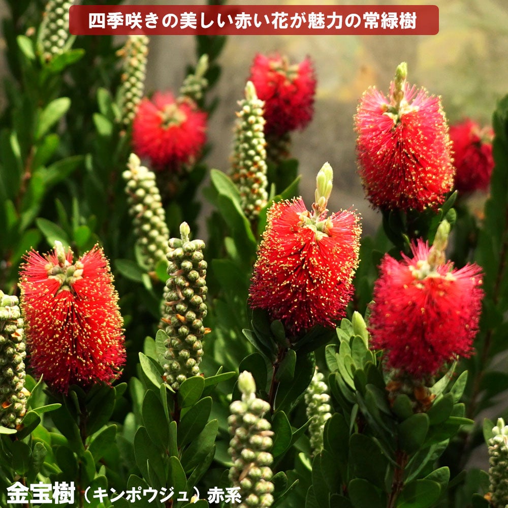 他の画像を見る 新品種のキンポウジュ 色鮮やかなカリステモン 【キャプテンクック】 ブラシノキ (カリステモン・キンポウジュ) 5号ポット苗 ¥ 2,299 税込 お気に入りに登録する 5.00 (1)