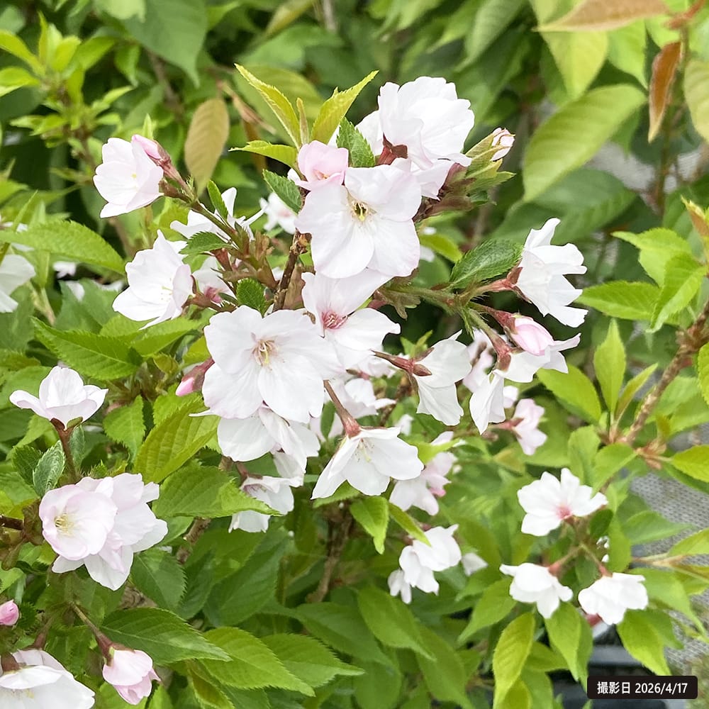富士桜は染井吉野より少し遅めに咲く小型の桜で「マメザクラ」とも呼ばれています。「富士山」などの山地でよく見られるため富士桜と総称されるようになりました。花は下向きで繊細、淡い一重咲きが日本の風情を感じさせます。