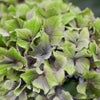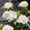 「レモンキス」は、咲き始めは緑色、咲き進むにつれて白くなり、やがて土中のpHに応じてピンクや青色に色づきます。退色が進むと今度は再び緑色に。初夏から秋にかけて複雑な花色の変化が楽しめる品種です。花弁をナデシコのようなフリルのついた形で華やか。全体的に緑色の時期が多いため、アンティーク感があるシックな装いが大人っぽい雰囲気に。株の大きさに対して大きな花房がつくため見栄えも抜群です。大きな花はつきますが枝がしっかりしているため、通常なら花の重みで折れることはありません。生育の速さも大人しめで管理しやすい品種です。
