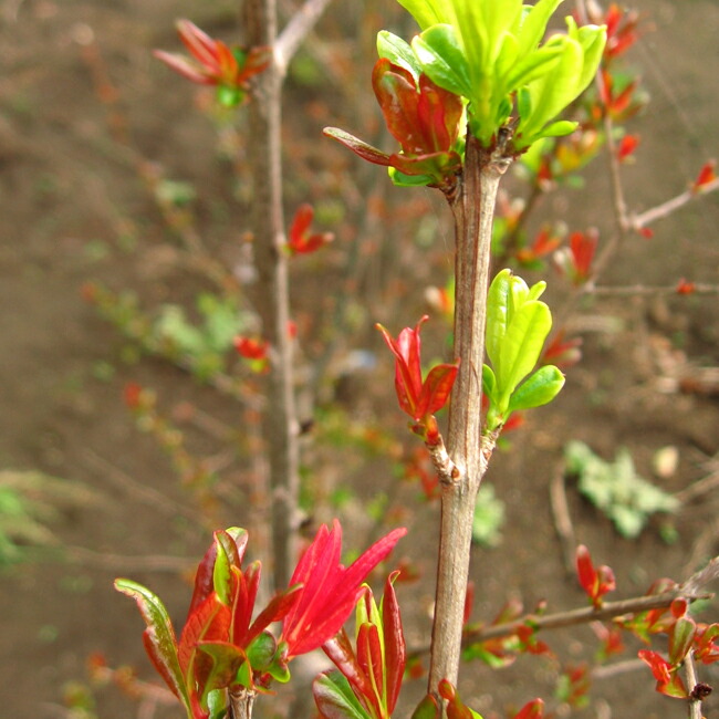 新芽が明るいグリーンや赤、オレンジ色の芽が出ます。