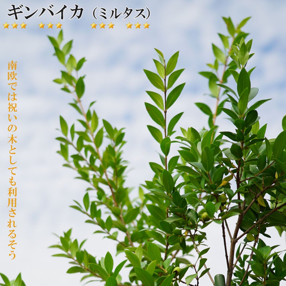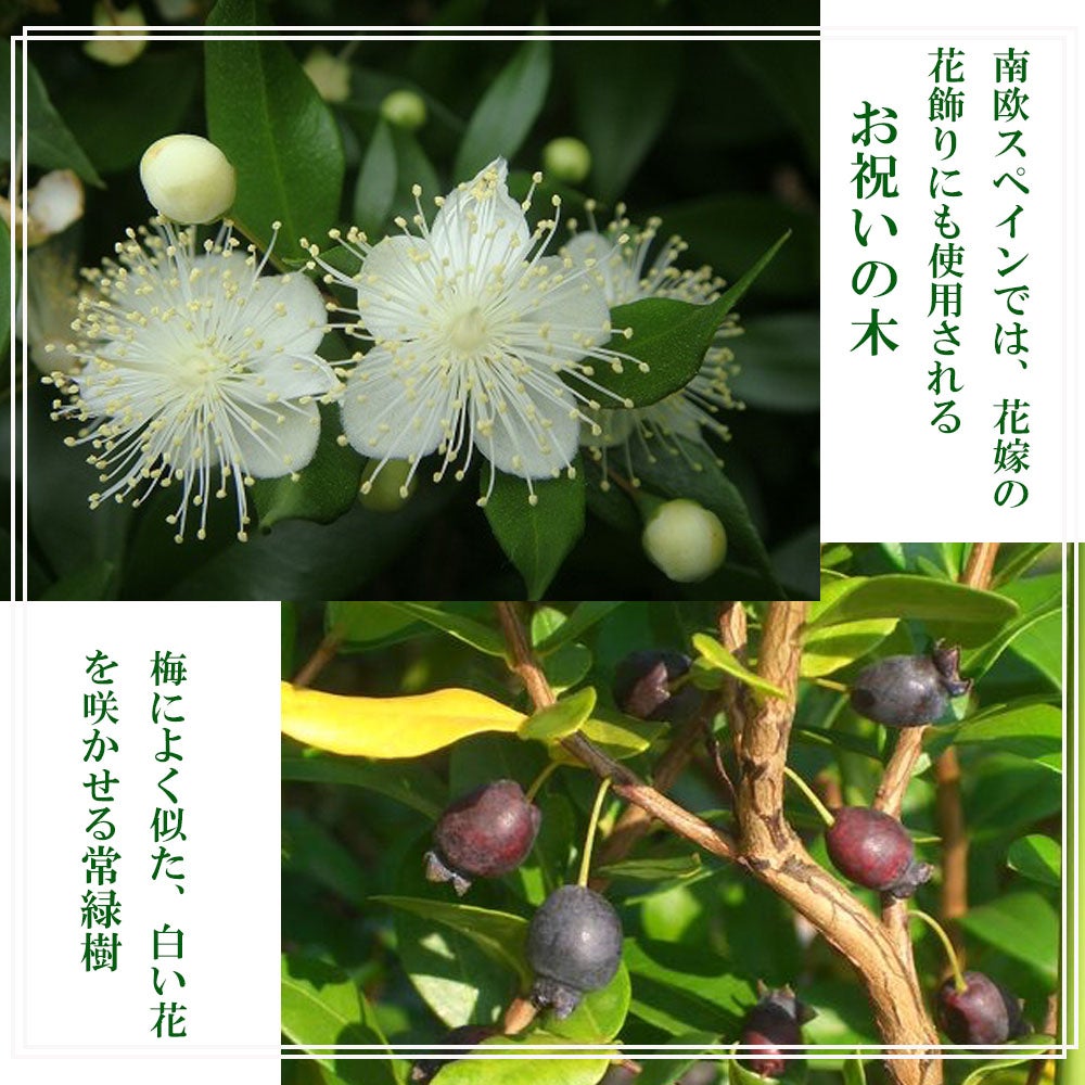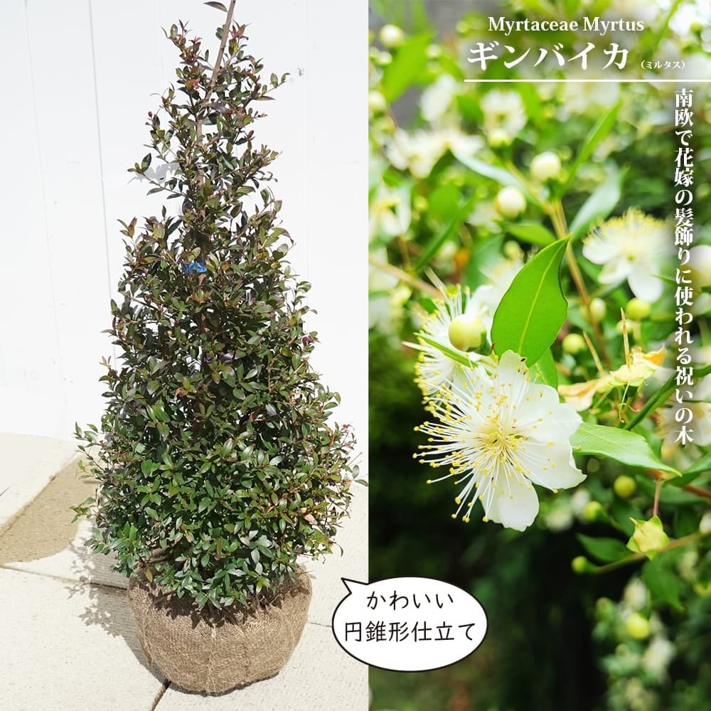 他の画像を見る 白い花はハーブとして。マートルと言います。 祝いの木 【ギンバイカ (ミルタス)】 円錐形 根巻き苗 価格 ¥ 5,498 税込 売り切れ 再入荷お知らせ お気に入りに登録する 5.00 (2)
