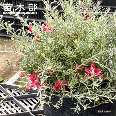 「ブラックレンジ」はシルバーグレーの美しい小葉を茂らせるグレビレアです。寒さに強く、冬には鮮やかな赤花を咲かせます。お庭への植え込みや鉢植えのカラーリーフとしておすすめです。