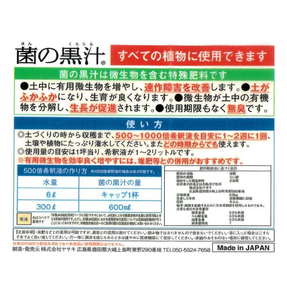 他の画像を見る 万能液肥 驚くほどの効果を発揮!さらば連作障害! 連作障害を防ぐ液肥 【菌の黒汁】 500ml (キンノクロジル) (JAS有機対応資材) 有機液体堆肥 価格 ¥ 2,178 税込 売り切れ 再入荷お知らせ お気に入りに登録する 5.00 (1)