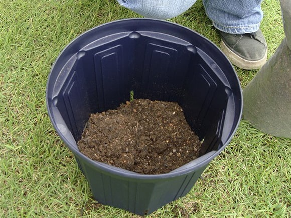 ポットの周りに土を入れます。