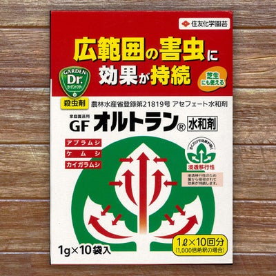 葉や茎から吸収されて植物体内にゆきわたり、広範囲の害虫に対して効果が持続する優れた浸透移行性殺虫剤です。