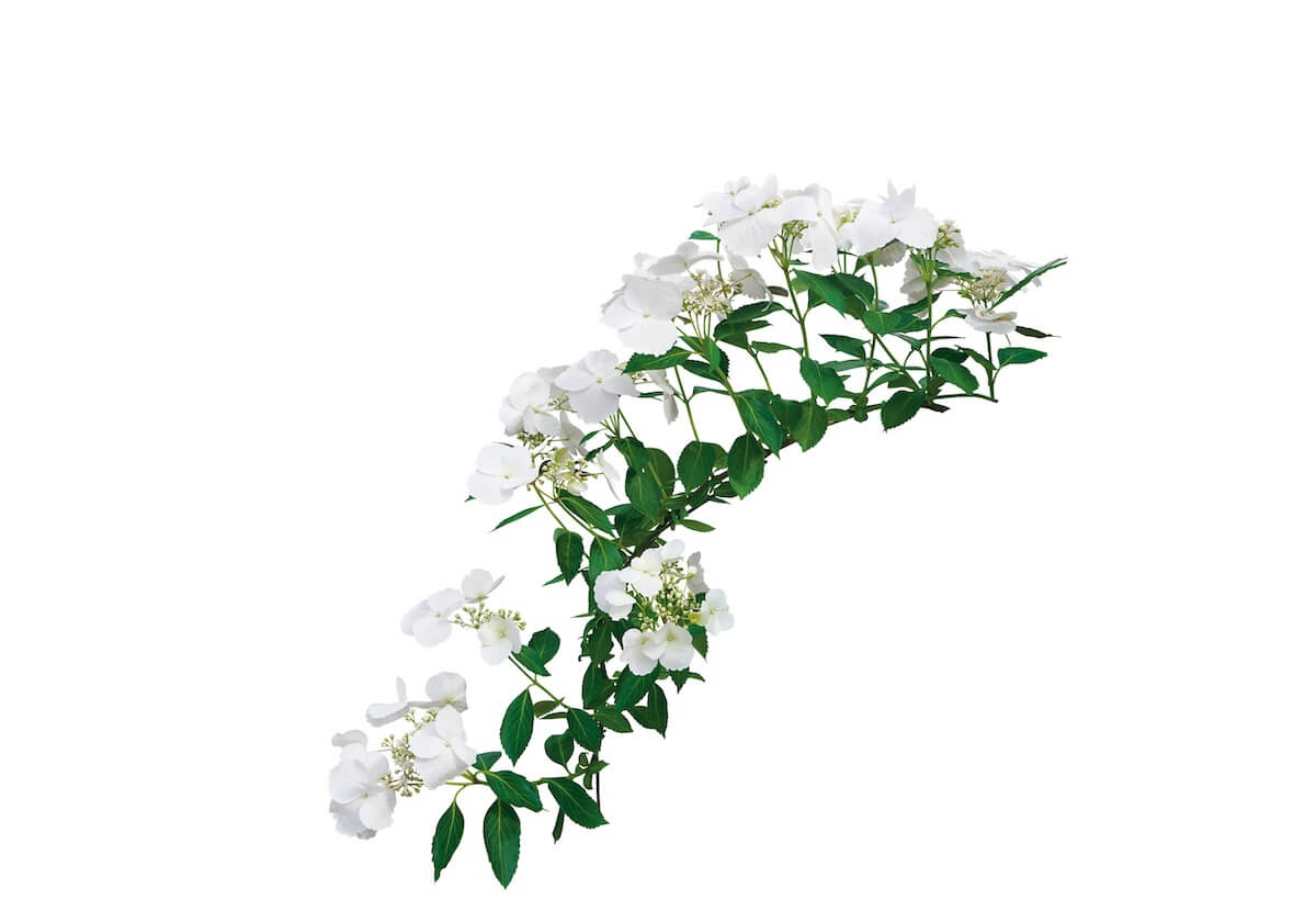 ピンクへと花色が変化します。土壌のpHによっては花色がソフトブルーになる場合もあります。側芽からたくさんの花が咲く画期的なアジサイです。一般的なアジサイと異なり、ピンチの位置や時期が自由に選べるため、ハンギングや誘引による仕立ても可能です。花と葉の大きさも絶妙にバランスします。