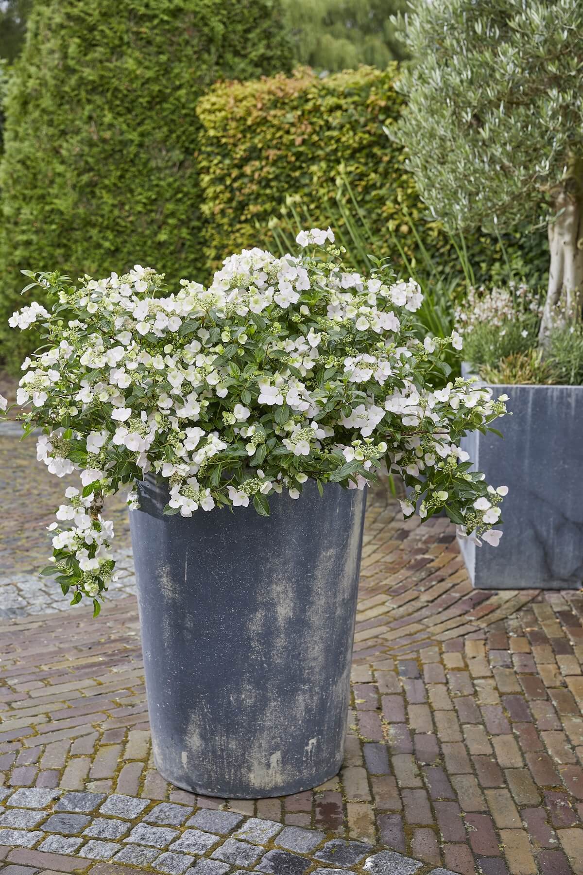 ラグランジアは枝につく芽(側芽)に花がつくので、枝の先端にのみ花がつくこれまでのアジサイに比べて、たくさんの花をつけます。剪定が簡単。剪定位置を細かく気にしなくても、次の年にはたくさんの花芽をつけるアジサイです。また、剪定をしなくてもそのナチュラルな草姿を楽しむことができます。