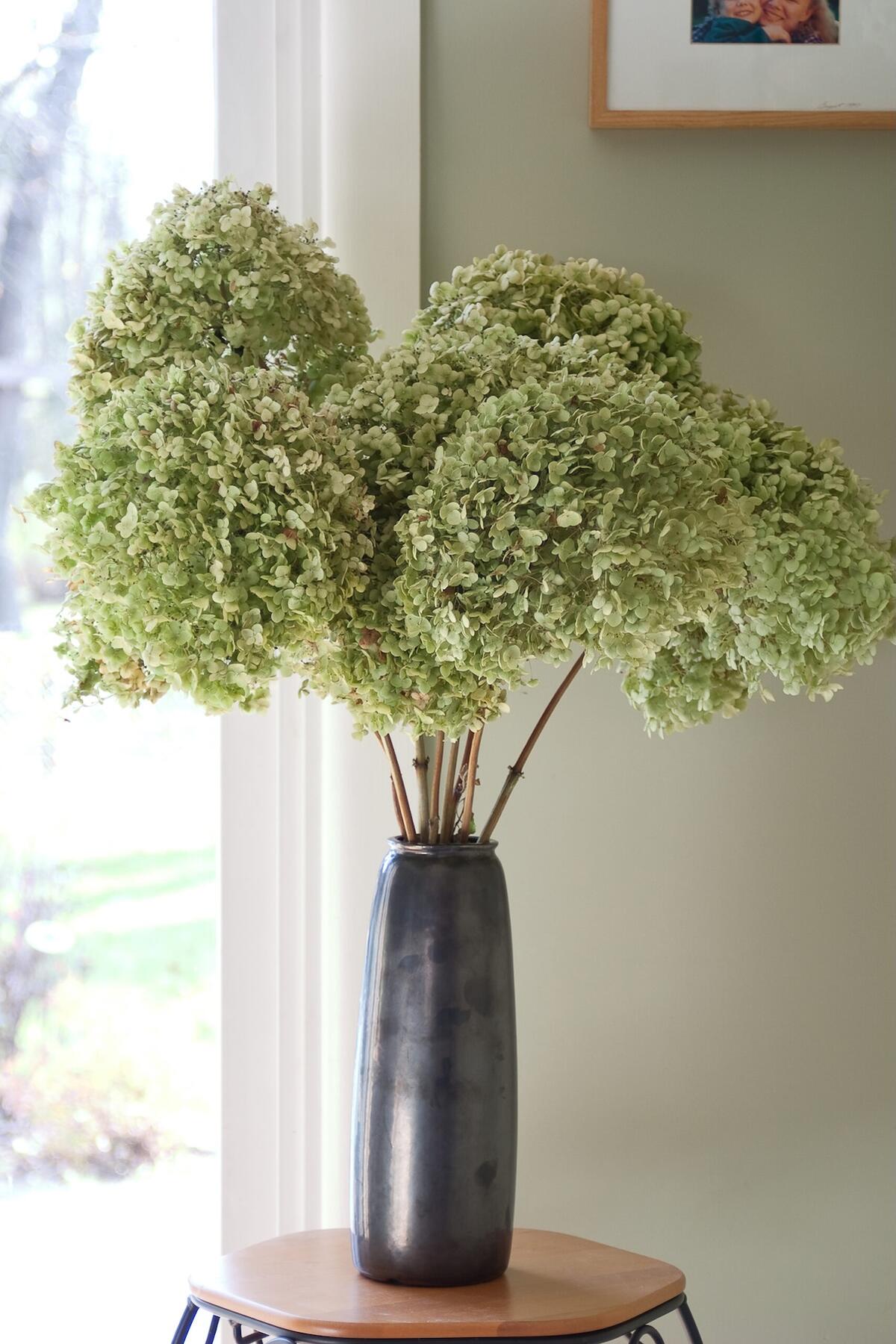 丈夫な太い茎で支えられ、雨に強くて倒れにくいです。花序はクリーム色から純白色、そして黄緑色へと変化します。花色は土壌酸度の影響は受けません。大きいものだとバスケットボールくらいの大きさの花をつけ、圧倒的な存在感でお庭をグレードアップしてくれること間違いなし。ドライフラワーや切り花にもおすすめです。