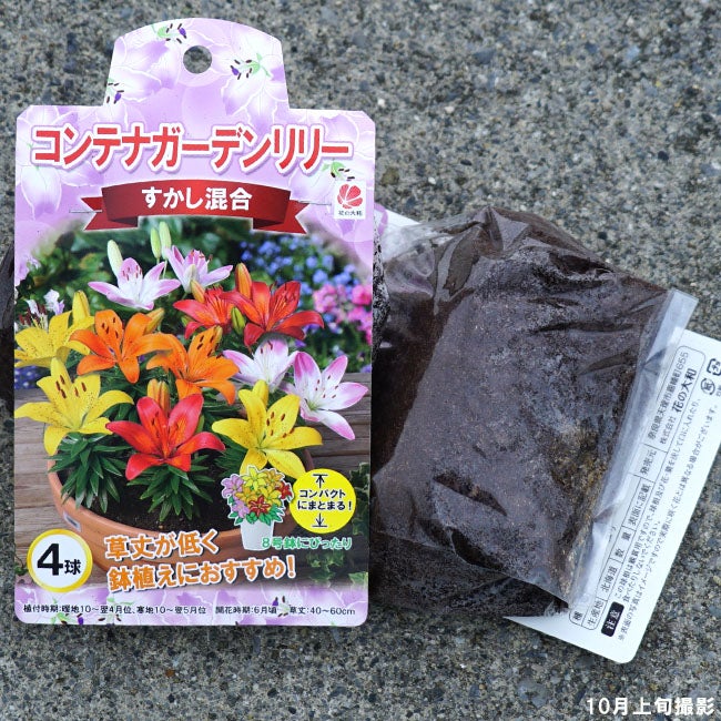 他の画像を見る コンパクトに咲くユリ。花壇や鉢植えにおすすめ コンテナガーデンリリー 【すかし混合】 球根 (4球入) 植え付け時期10月~翌年4月 価格 ¥ 1,399 税込 売り切れ 再入荷お知らせ お気に入りに登録する