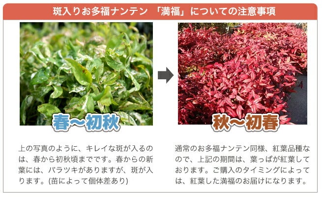 他の画像を見る 珍しい斑入り葉 難を転じて福となす。幸せを呼ぶ木 斑入りお多福南天 【満福(まんぷく)】 5号ポット苗 登録品種・品種登録 価格 ¥ 1,599 税込 売り切れ 再入荷お知らせ お気に入りに登録する
